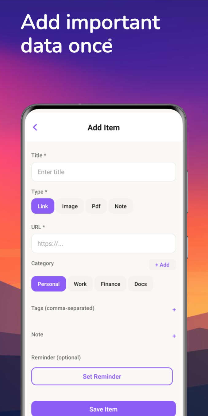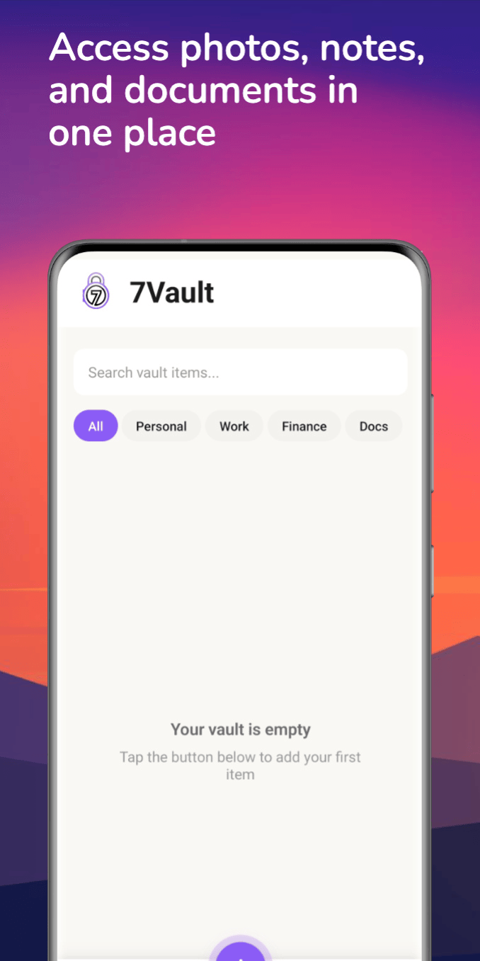 7Vault helps you keep important documents, photos, passwords, notes, and links in one secure place, so you don’t need to search your gallery or files every time someone asks for them.